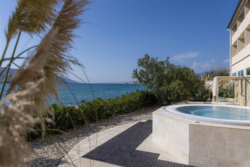 Hotel Pagus sa nachádza priamo na štrkovej pláži a ponúka